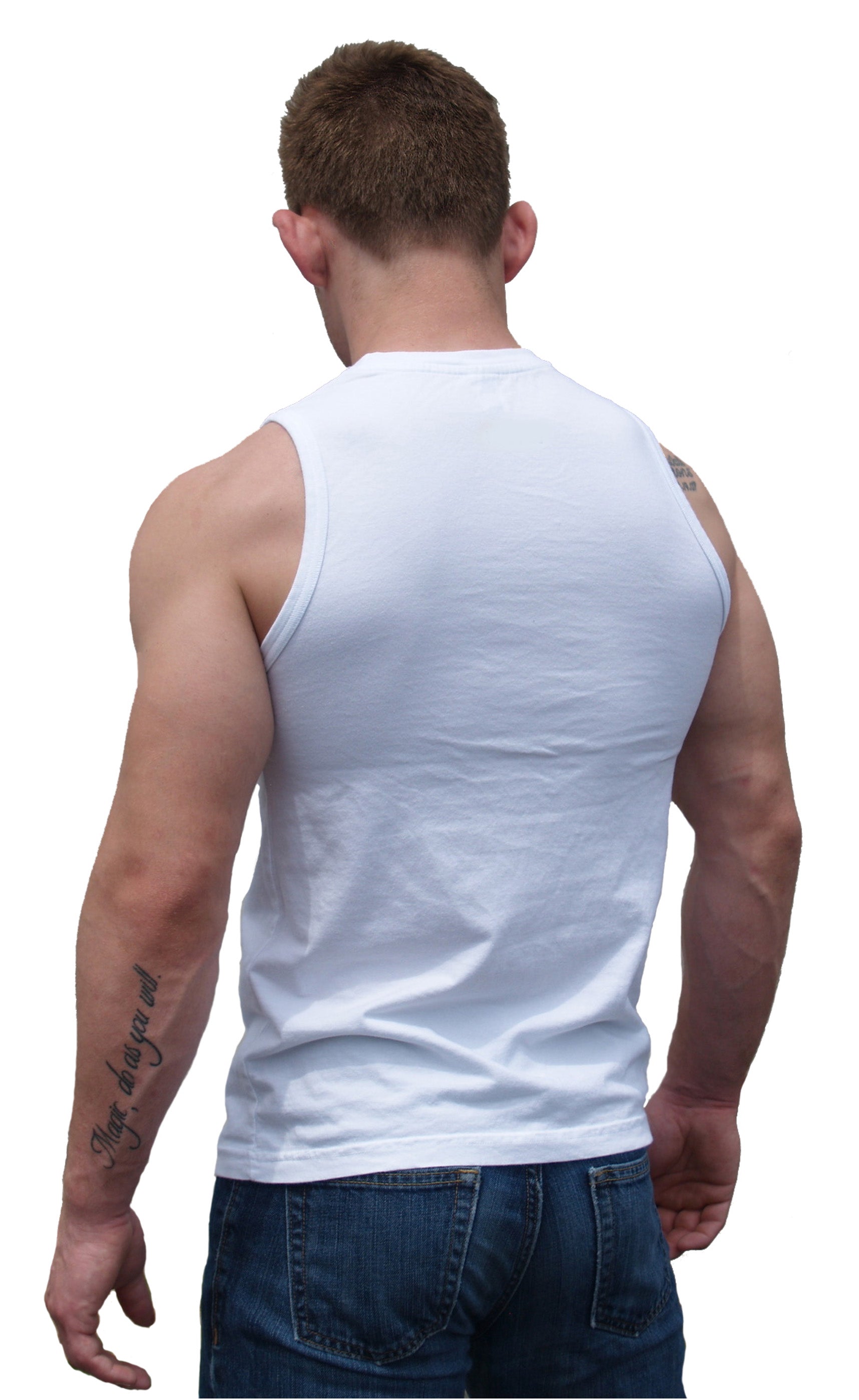 Forget bareback...go bare front with ajaxx63's hot athletic fit sleeveless muscle tees available with no graphics in your favorite colors. This sleeveless barefront tee is perfectly cut for ease of movement, and the opening is designed to hit your shoulder and traps at the most flattering location for you. A finished seam gives the shirt the ability to go from the gym to a night out with your buddies.