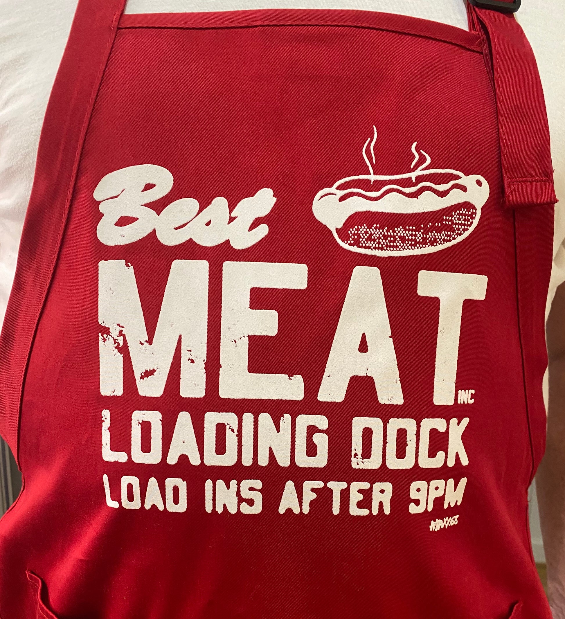 Entertaining and cooking are fun! Why not wear a cool apron that sends a fun message to your guests and actually keeps what you are wearing clean. One of the things we noticed, as we got older, is that even though we try to be casual and cool, it totally sucks when you get sauce or oil on a great shirt while cooking. This is the perfect solution to that dilemma. Stay looking neat and clean in this durable apron that features two easy-access pockets. White screen printed graphic on a red apron.