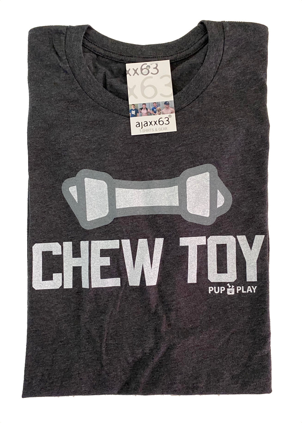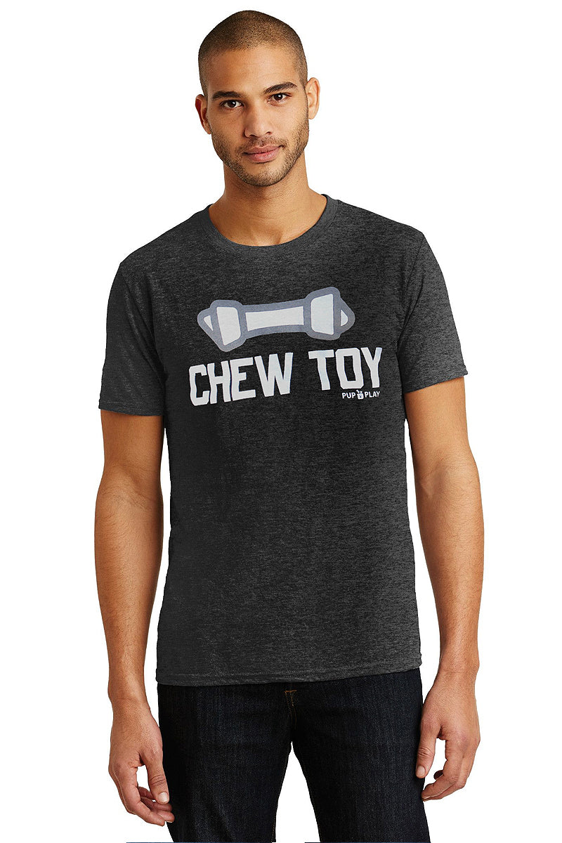 Chew Toy...what every pup needs this season! PUP has been so good today...he deserves a treat. A nice big Chew Toy! Are you a chew toy to others? Or have you been such a good pup you deserve your own chew toy? Either way...this shirt is kick ass. 2-color gray and white graphic on charcoal gray heather shirt. The shirt is a premium heather, super soft, lightweight with a fitted (but not banded) sleeve and side-seamed for better quality and fit. Honestly, it's a gorgeous, sexy shirt.