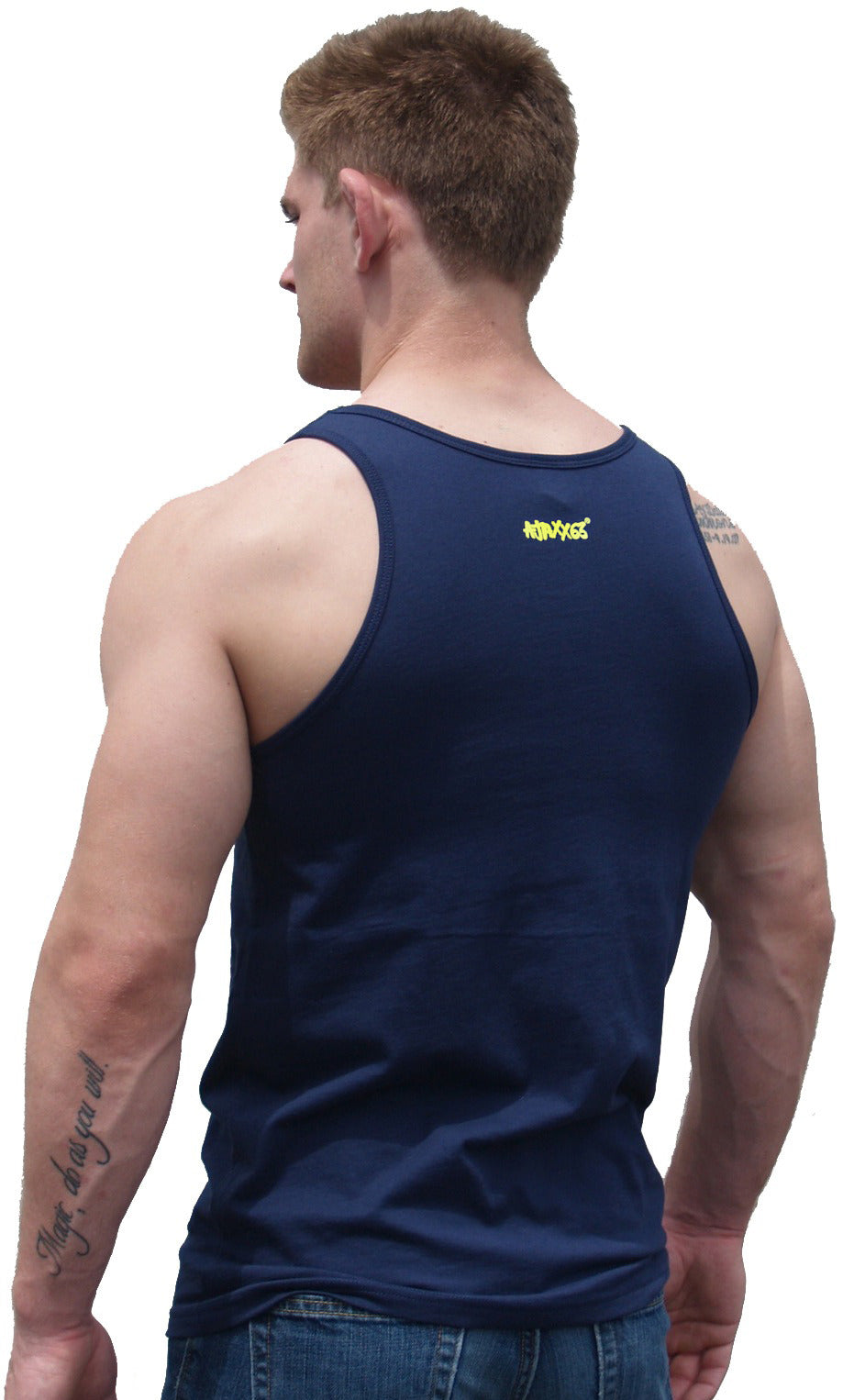 Hmmmm...you see that hot bearded older dude on the floor at the gym, or walking his dog in your neighborhood and you just think, "Damn Daddy." Two-color college gold and white, silk-screened graphic on a navy tank top. Featuring a durable ribbed neckline, as well as durable ribbed arm openings.